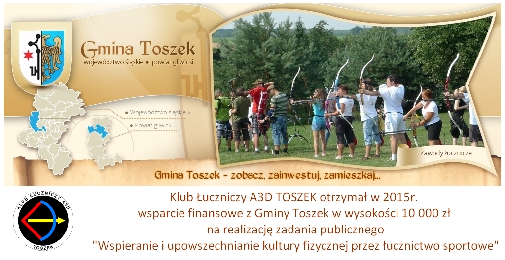 Uwaga ! Ważne ! Coroczne spotkanie członków Klubu Łuczniczego A3D TOSZEK odbędzie się we wtorek, 29.12.2015 o godz. 18:00, w restauracji "Złota Kaczka" www.zlota-kaczka.com , w Toszku, ul. Bolesława Chrobrego 5, czyli tam gdzie zawsze. Serdecznie zapraszamy i prosimy o potwierdzenie obecności.