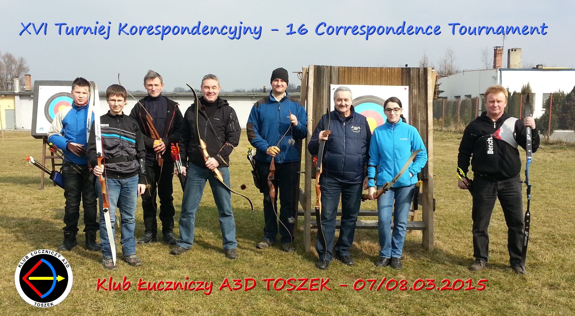W sobotę, 07.03.2015 w godz. 11:00 – 13:00 Klub Łuczniczy A3D TOSZEK przeprowadził strzelanie w ramach XVI edycji Turnieju Korespondencyjnego. Pogoda dopisała, słonecznie, temperatura ok. 12 stopni, nieprzeszkadzający lekki wiatr. Niestety, w zawodach wzięło udział tylko 6 zawodników klubowych oraz gościnnie Ryszard i Mateusz Pawłowscy z Opola. Tradycyjnie, na zakończenie wręczono pamiątkowe dyplomy klasyfikacji lokalnej. A oto wyniki (w nawiasie miejsce w ogólnym rankingu):